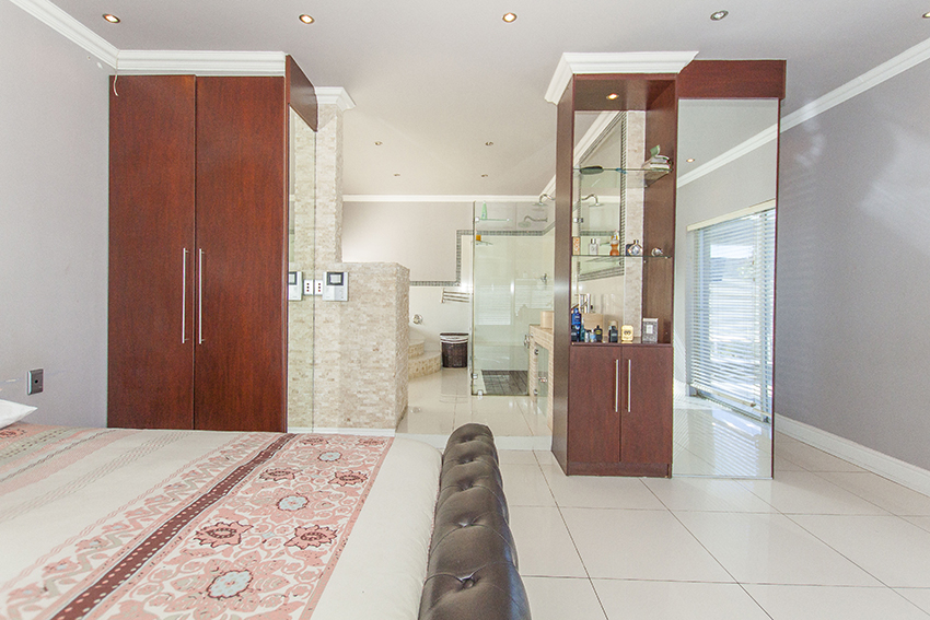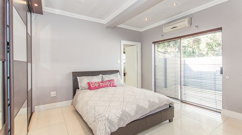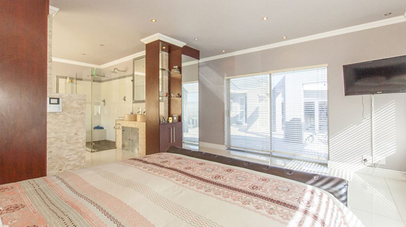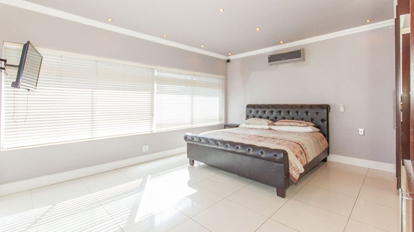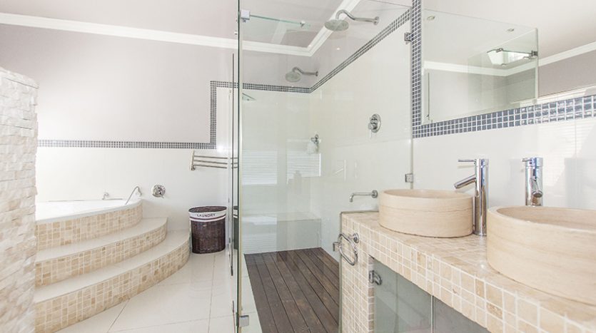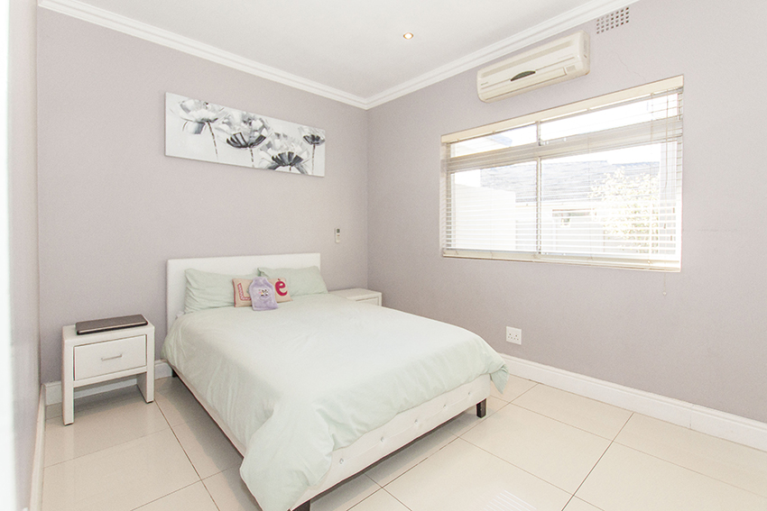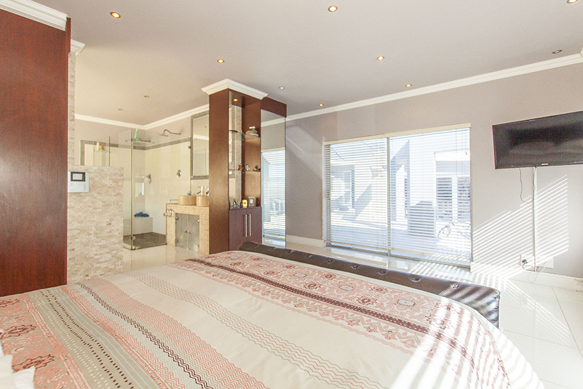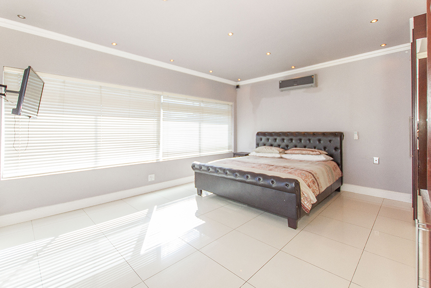 This modern up market home is fully tilled and has top class finishes. It comprises of three large bedrooms all with en-suite bathrooms, air conditioning and adequate cupboard space. There is a guest loo, three outside showers and a equipped granny flat/ teen pad.