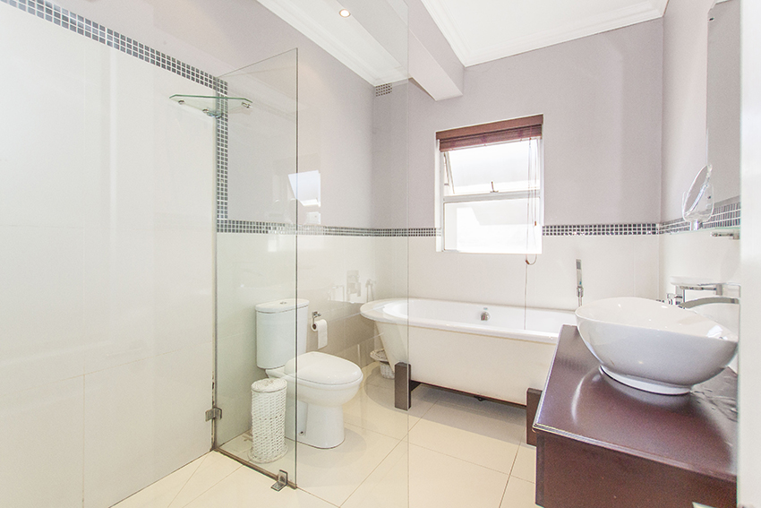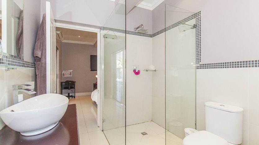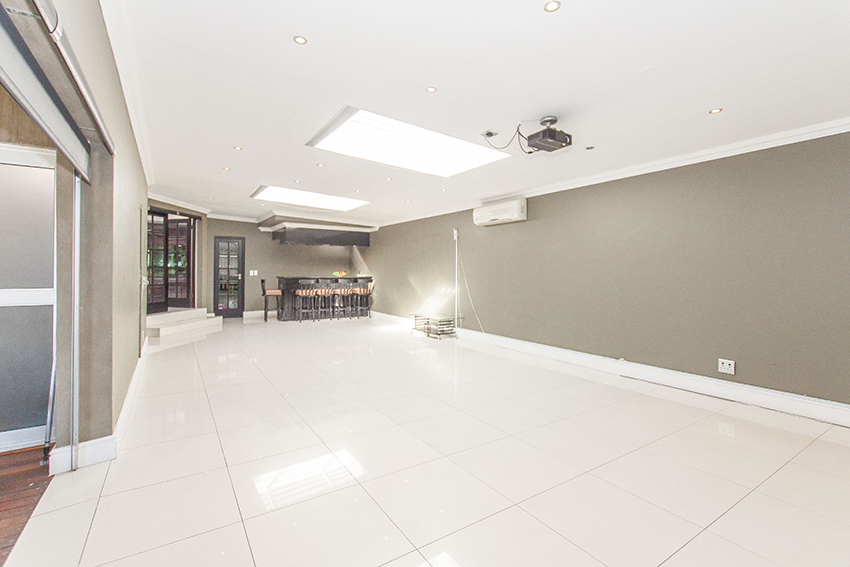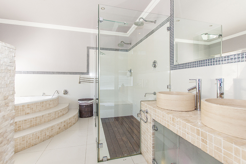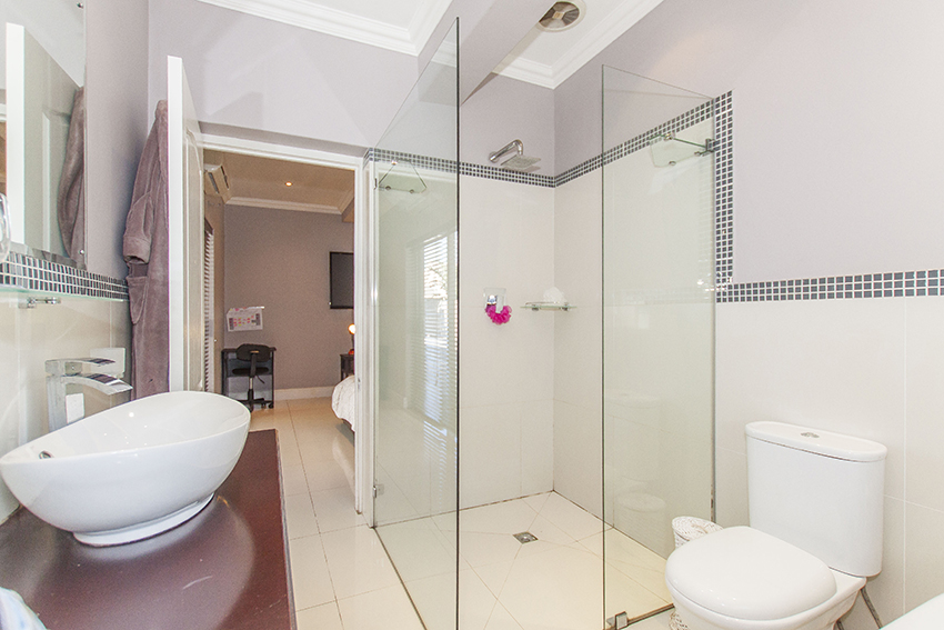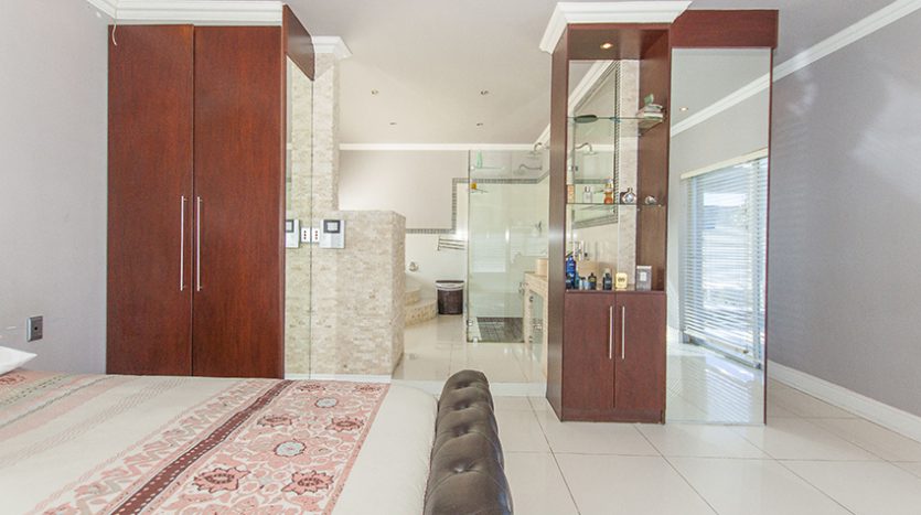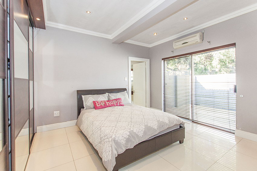 This modern up market home is fully tilled and has top class finishes. It comprises of three large bedrooms all with en-suite bathrooms, air conditioning and adequate cupboard space. There is a guest loo, three outside showers and a equipped granny flat/ teen pad.