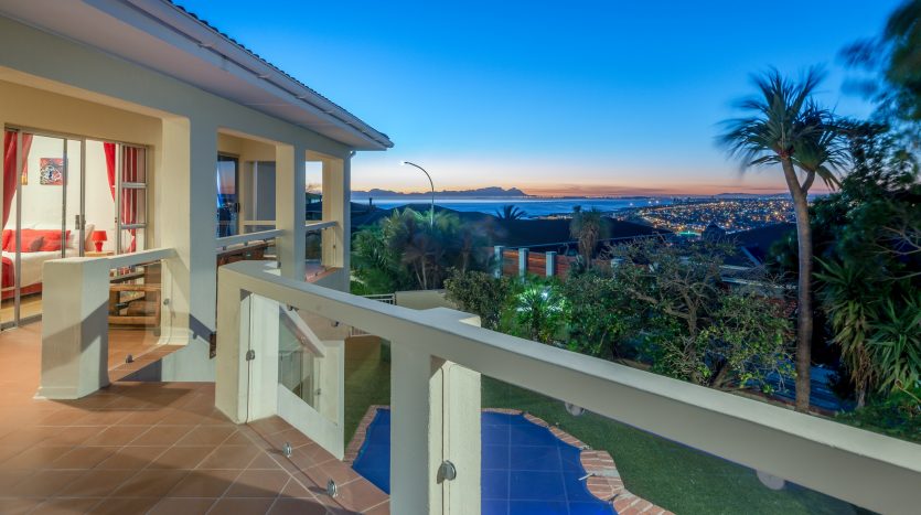 This spacious light and bright family home is situated in the sought-after area of Mountainside Estate in Gordon’s Bay. An architect designed property which offers stunning ocean views from all the bedrooms and open plan living areas which lead onto the large balcony.