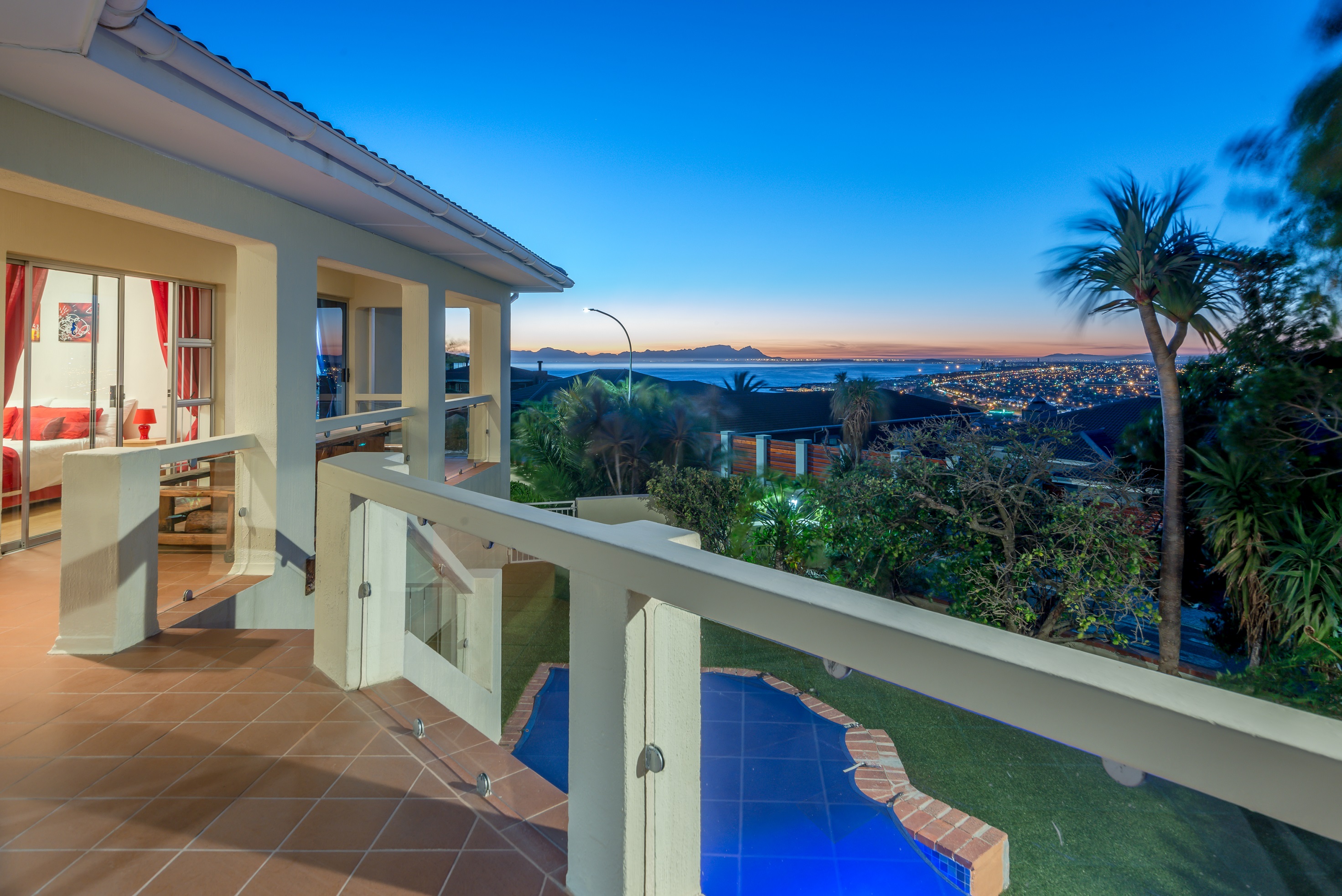 This spacious light and bright family home is situated in the sought-after area of Mountainside Estate in Gordon’s Bay. An architect designed property which offers stunning ocean views from all the bedrooms and open plan living areas which lead onto the large balcony.