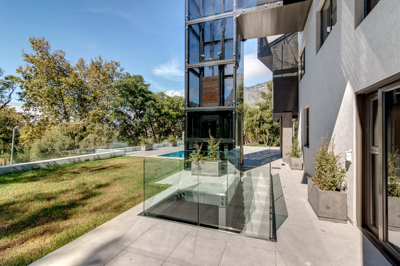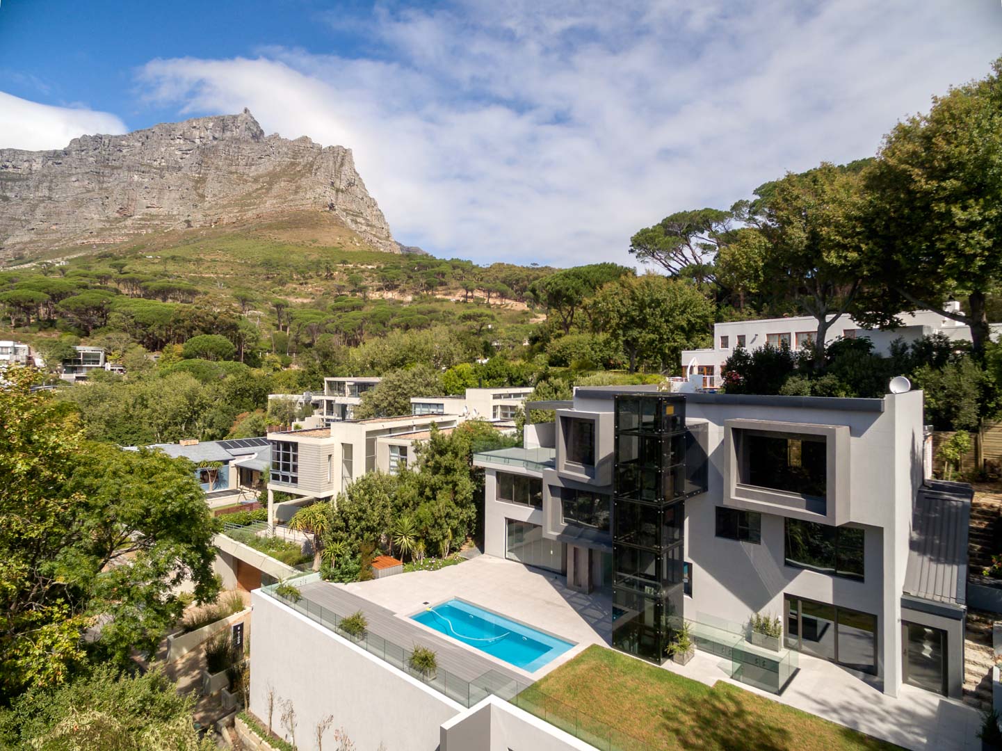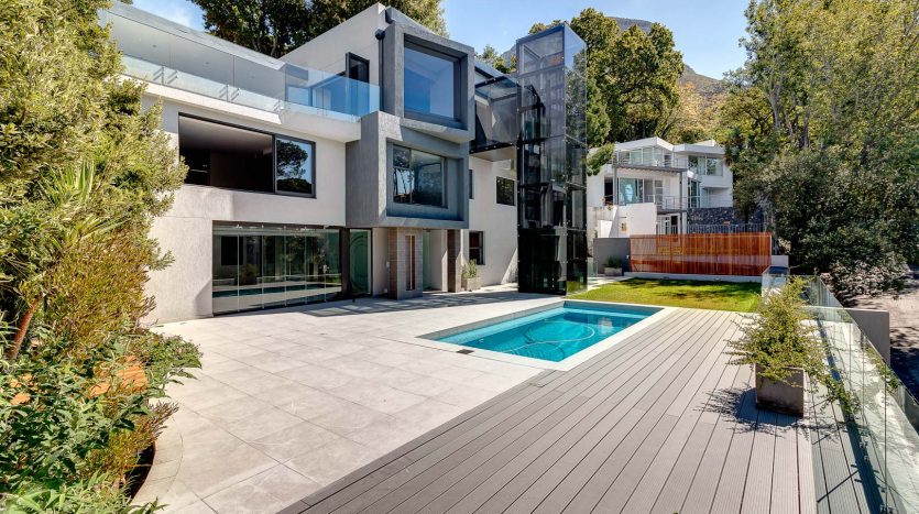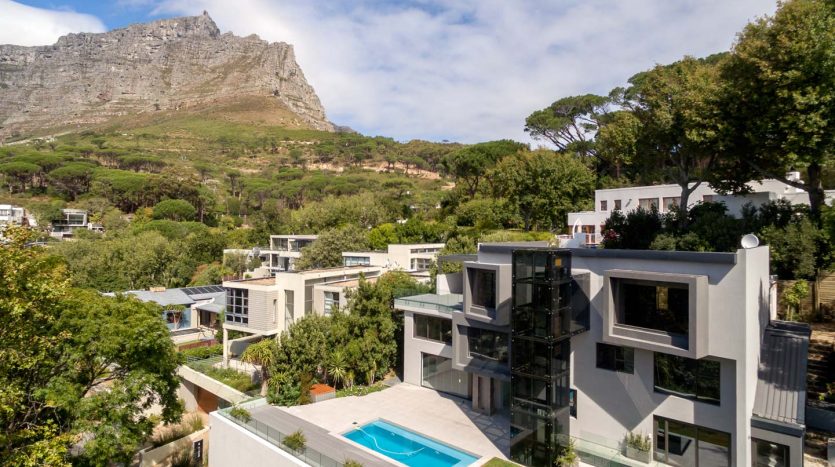 Situated at the foot of one of the 7 wonders of the world Table mountain and a mere …. drive from the famous Cosmopolitan beach of Camps bay this property offers everything and more to sooth an appetite for stylish and luxury living in a quiet and serene part of Cape Town. This four story home with scenic glass elevator, imported euro casa Italian kitchen equipped with Miele appliances Designed with open plan living areas around the pool with stack away frame less glass doors that ensures indoor and outdoor living around the home. Fully automated with wall mounted Televisions in all major living areas and master suite.
