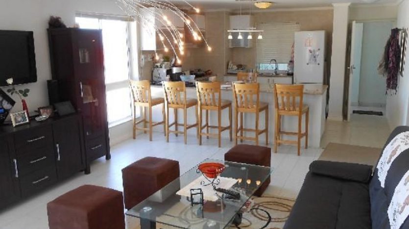 The apartment, which is within a hundred meters of the main beach of Gordon’s Bay, has underfloor heating, an en-suit bathroom for the main bedroom and a capacious,open lounge-leisure with granite kitchen tops.