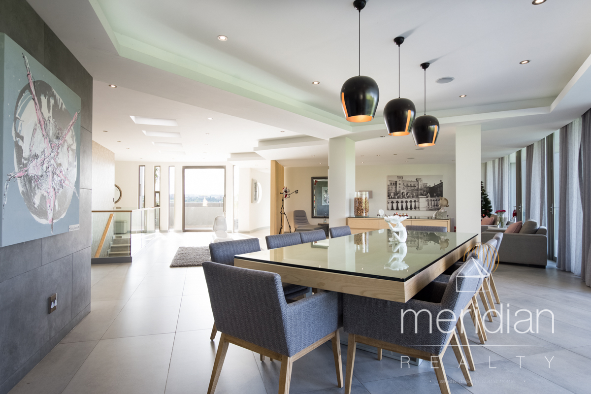 This architectural masterpiece offers on the first floor; an expansive entrance hall onto open plan glamorous three reception rooms.