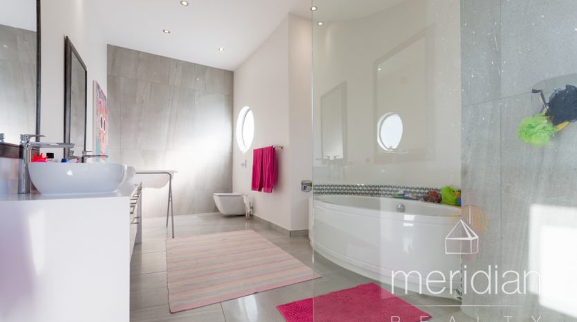 Top floor is just for ultra luxurious master suite with his and hers bathroom, walk in dressing area and private study. There is a Jacuzzi deck with adjacent shower and tranquil views.