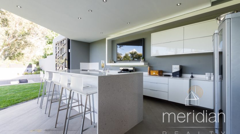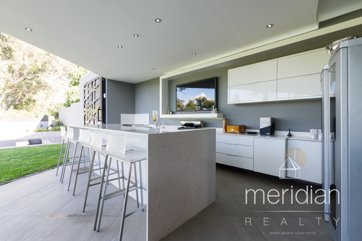 An entertainment patio with bar area onto heated pool and boma fire pit. The sleek kitchen boasts with Smeg appliances and large separate scullery. In separate wing there are 2 well sized en suite bedrooms and guest toilet.