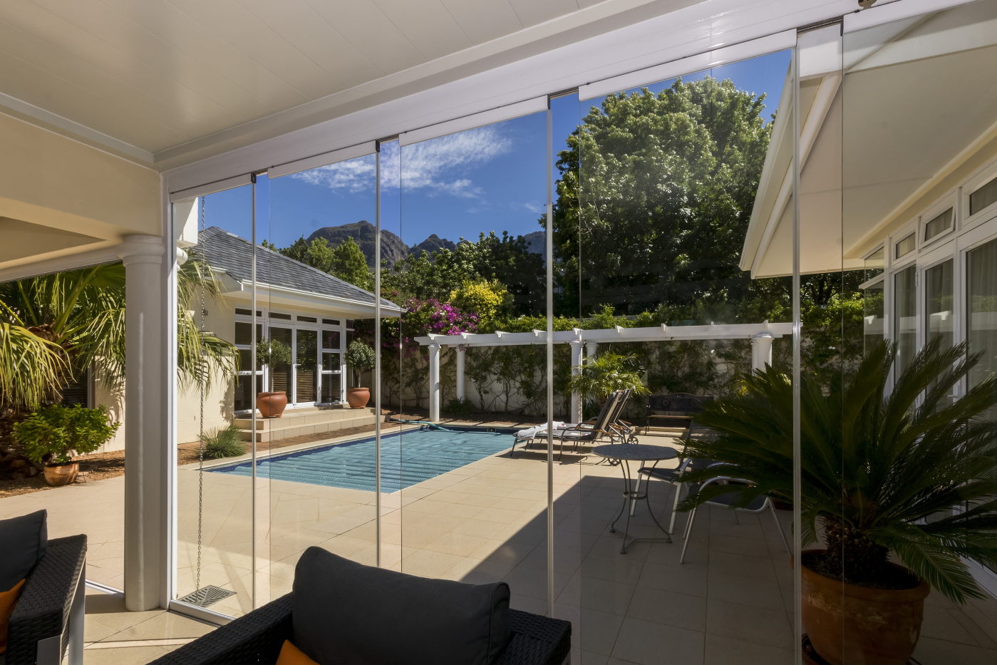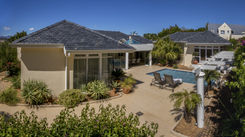What a rare find in the sought after world-class Erinvale Golf Estate. This beautiful home has been meticulously maintained to a high standard and offers beautiful open-plan living leading out to a delightful undercover patio. The sparkling pool is perfectly positioned and offers complete privacy. The grounds have been designed to benefit from low maintenance, perfect for those wishing to purchase for either long-term or holiday purposes. Extras include a well-appointed study, golf car garage, all bedrooms en-suite and double glazing in many areas! Magnificent!!