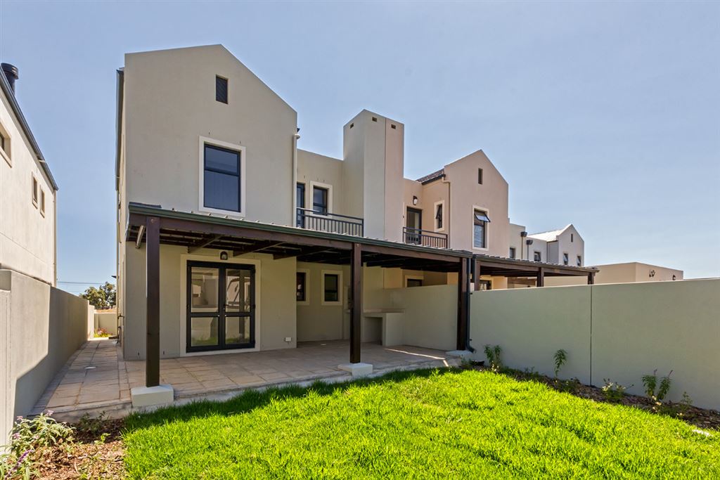 Choose your finishes from the Developer’s UPGRADED LUXURY RANGE (T&C’s apply). Pay NO TRANSFER DUTY. The currently under construction, the home will be ready for occupation mid-2018. Downstairs: open plan living/dining, modern kitchen, guest loo, study nook, covered patio, built-in braai, north-facing garden. Upstairs: three double bedrooms, two bathrooms (master en-suite).