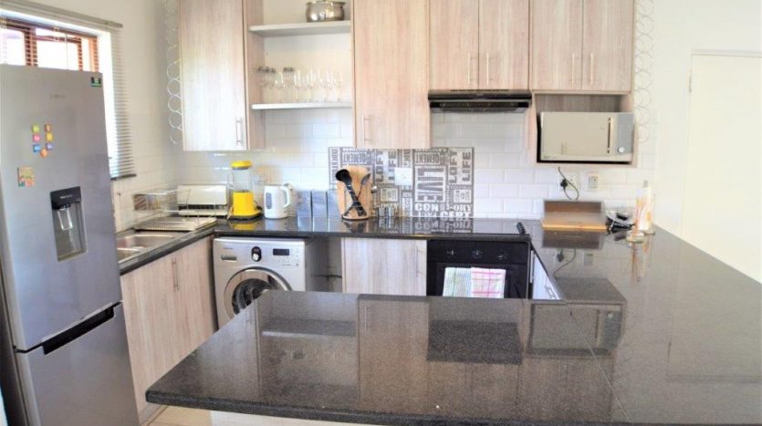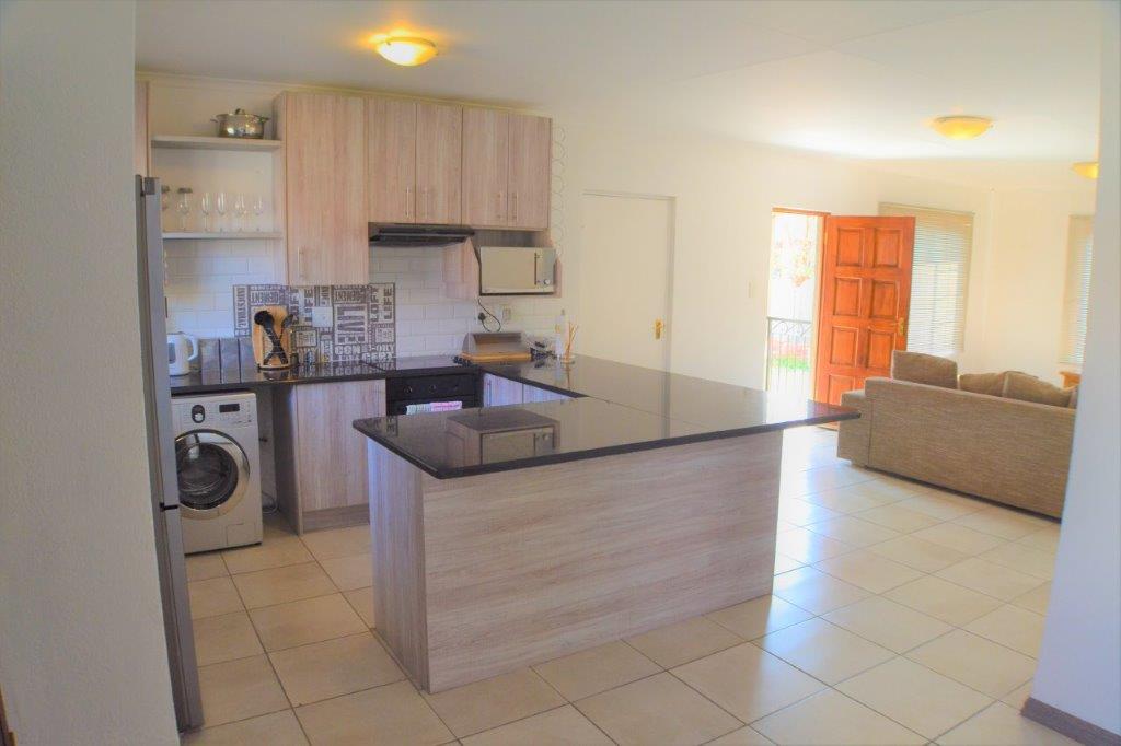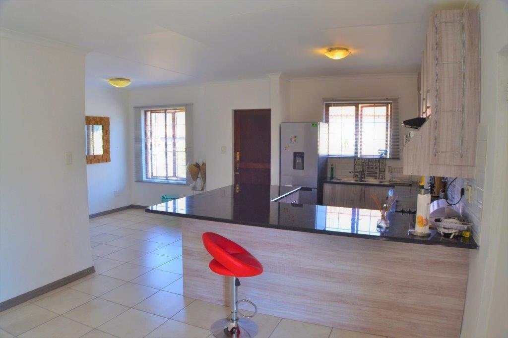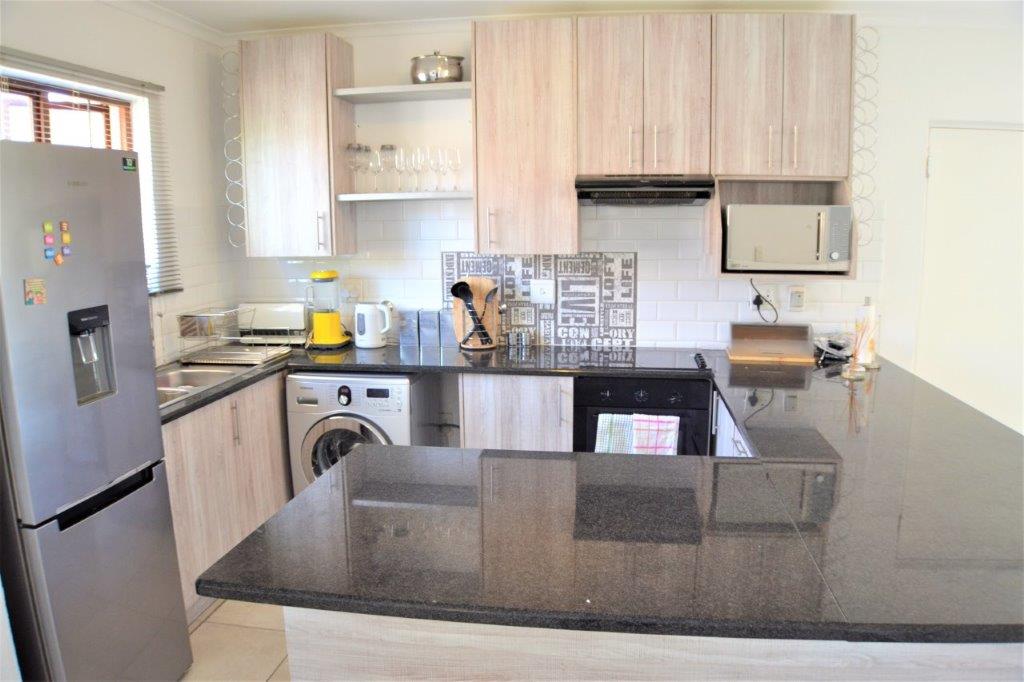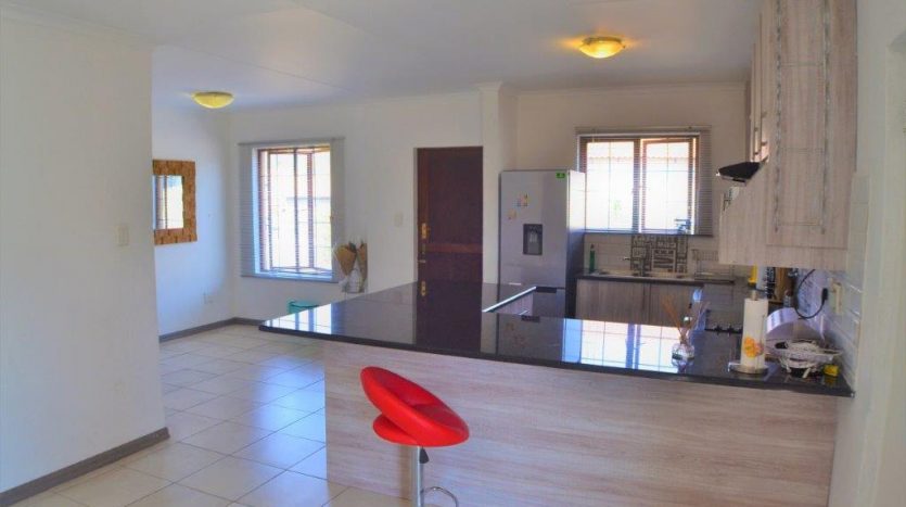 For your convenience you have direct access via the garage to your home, which leads you to the lounge on the left and kitchen on the right. Straight through you will go to the dining area and then through the passage you will find the bedrooms, all fitted with built in cupboards. The main bedroom has an en-suite with shower and bath. The guest bath has a spacious shower with toilet. These two bathrooms have been redone and are brand new.